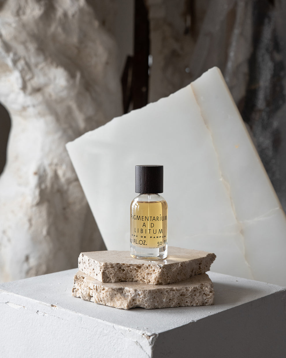 So familiar, yet new. Chypre perfume Ad Libitum was inspired by the glow of the sunset over Prague Castle. The fading light of an energetic day symbolizes the upcoming nightlife. The first contact is mediated by refreshing citruses elegantly covered by the touch of aldehydes. Delicate jasmine and monumental cedar develop the scent in its heart up to the unusual scent of moss, patchouli, and musk. It all results in an elegant and slightly nostalgic fragrance that mirrors Prague in the way it might have been seen by Adolf Loos and Le Corbusier.