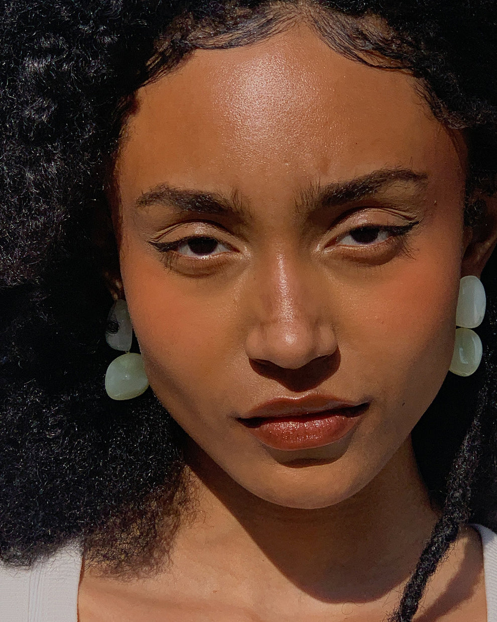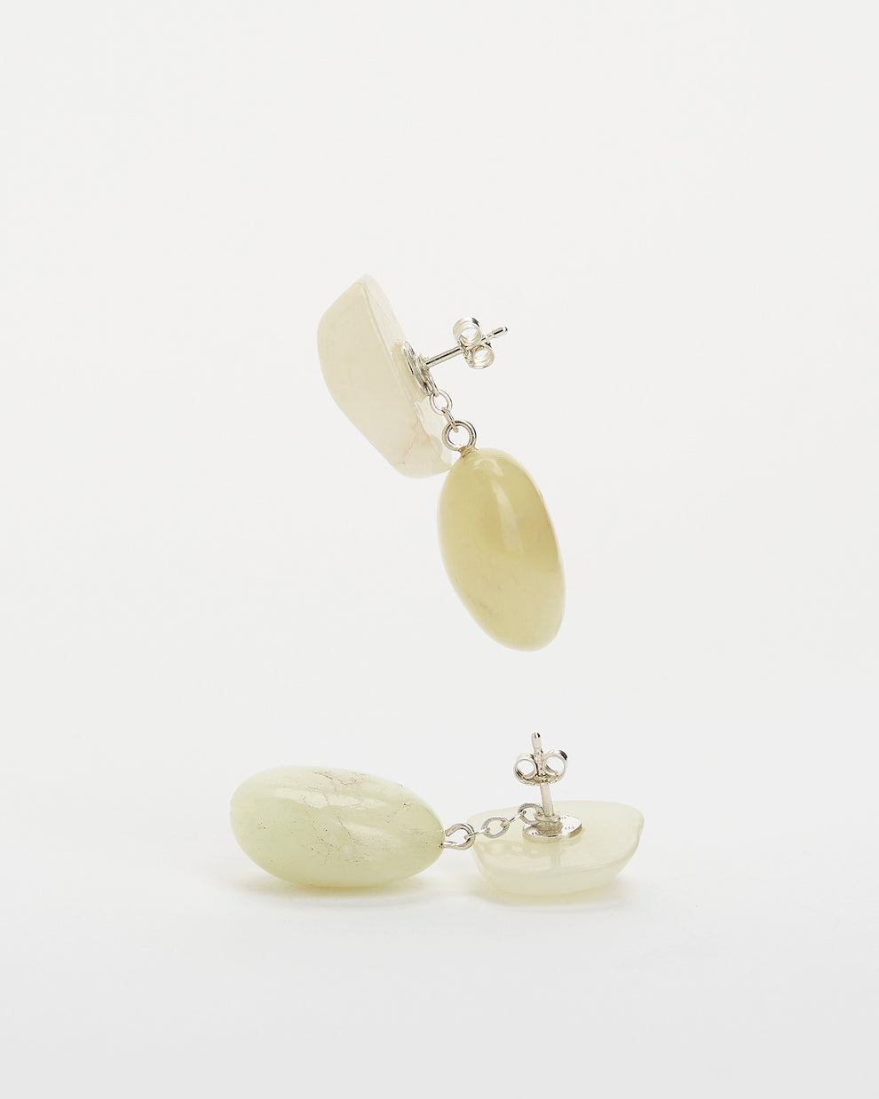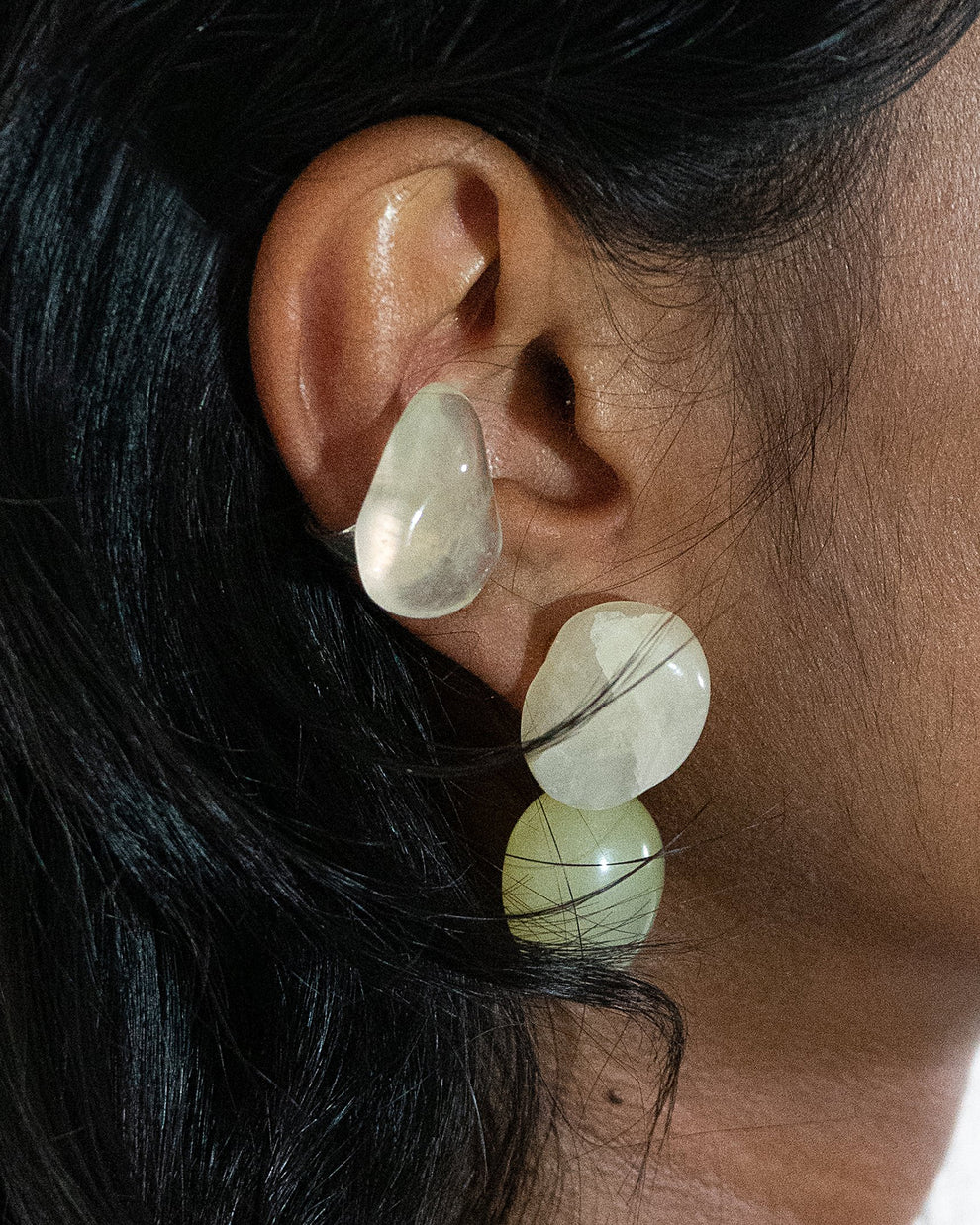 Here, the natural shapes of two semi-precious stones meet organically. The beautiful stones reflect the light and gently adapt to the wearer's movements. A cool addition to any look, elegant statement pieces, clear and without unnecessary frills.
