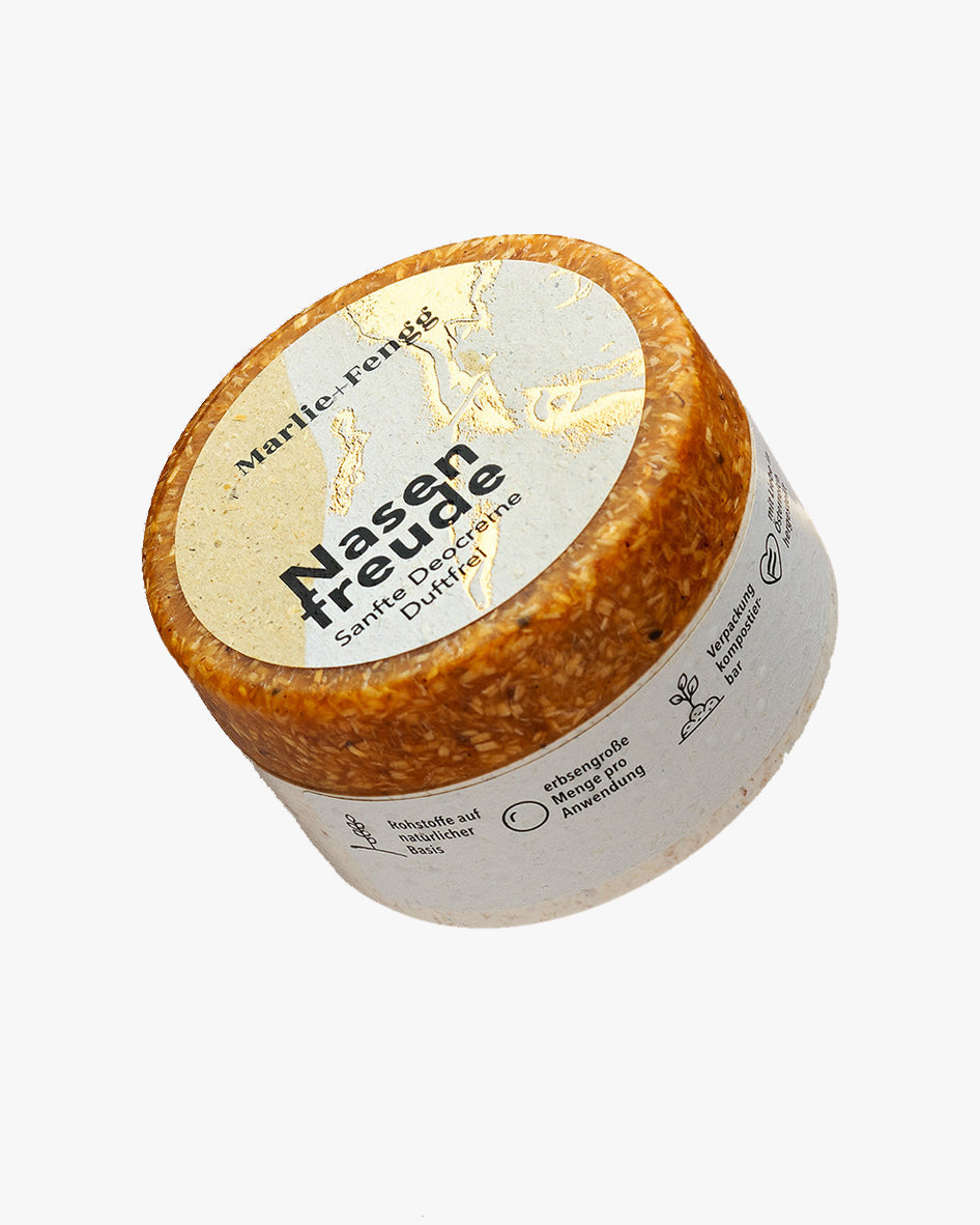 The cream contains natural baking soda to reduce odor and bacteria and is hand-mixed with skin-soothing D-panthenol. It is so creamy and nourishing that you can even apply Nasenfreude after shaving without reddening your skin.