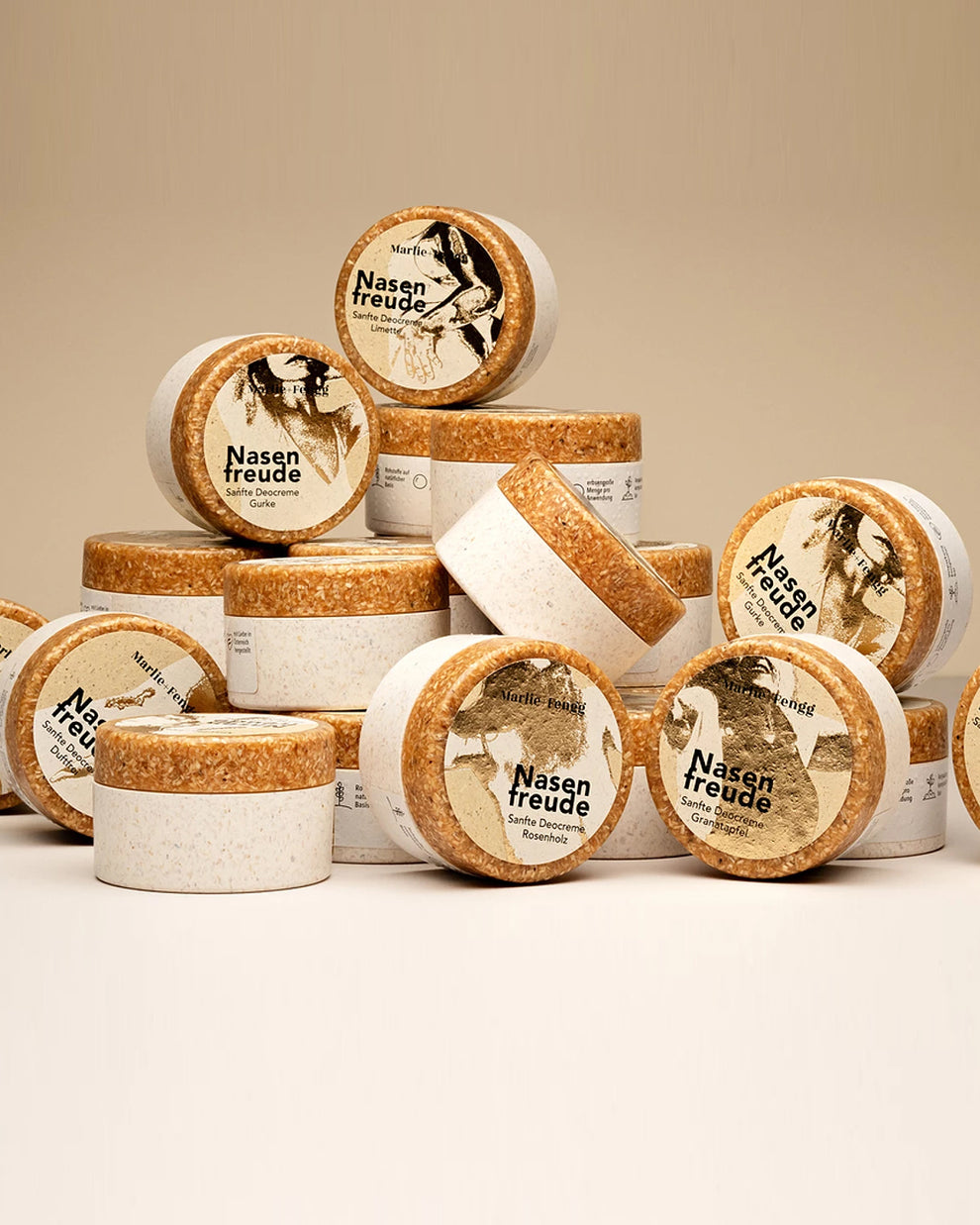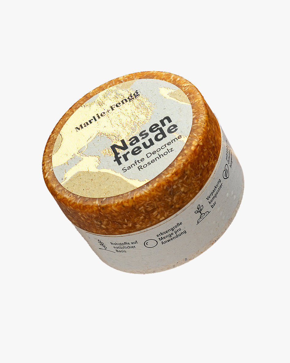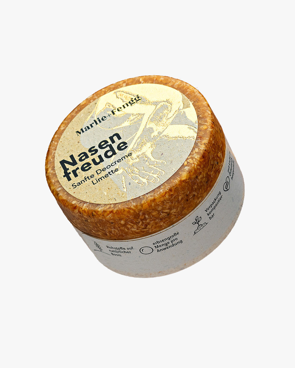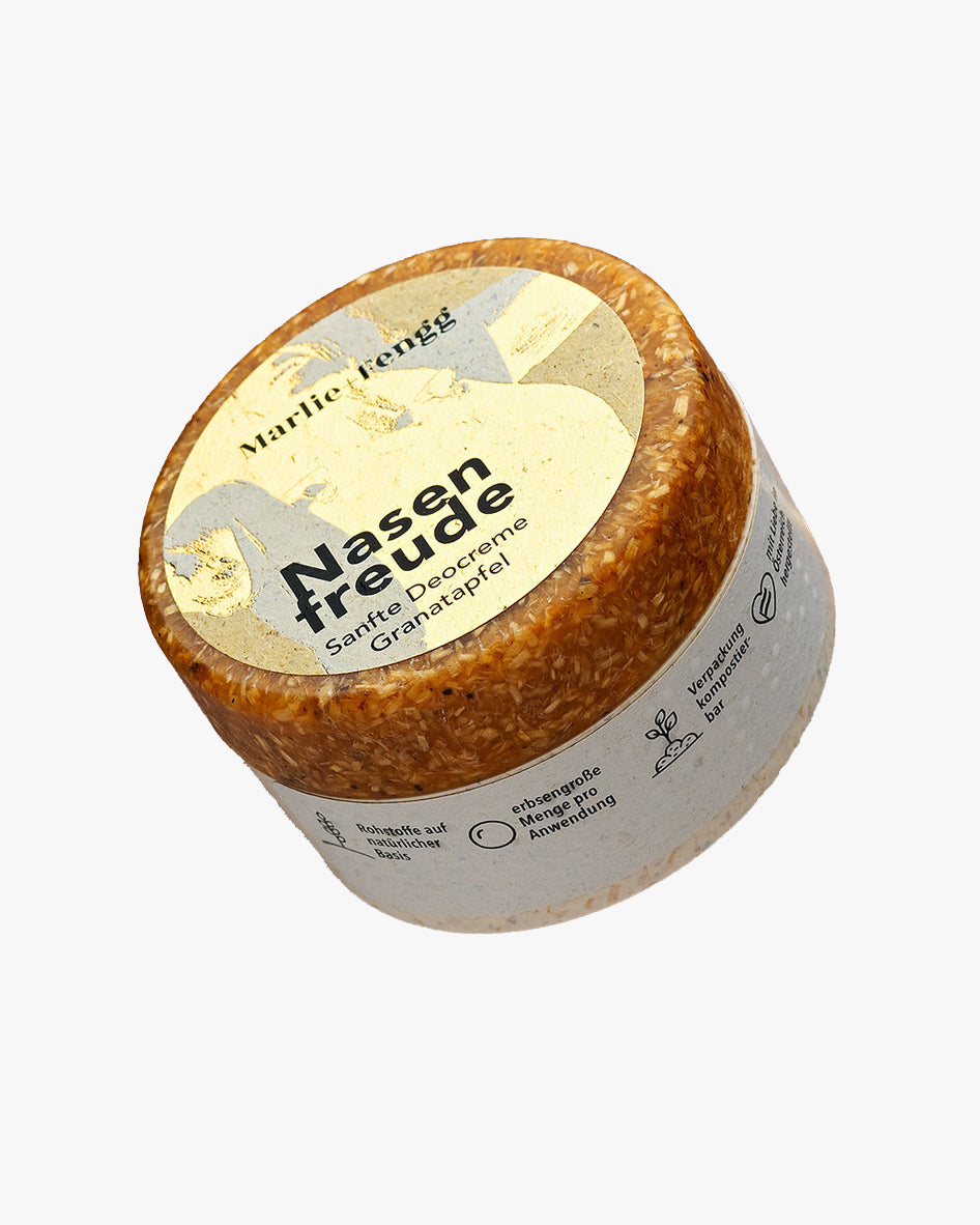 This fantastic, highly effective deodorant cream from the Viennese label Marlie+Fengg in a fully compostable super jar is available in four delicious scents: summery cucumber, fresh lime, fruity pomegranate and floral-tart rosewood.