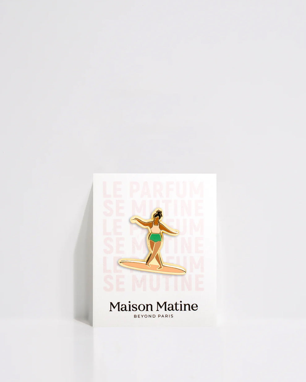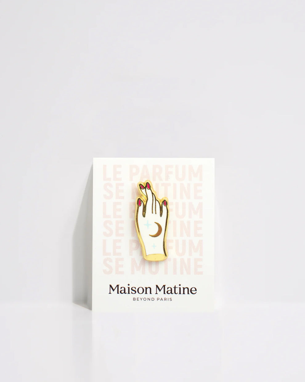 The colorful and iconic pins from Maison Matine take up the illustrations of the lovingly designed bottles of the Eau de Parfums. No matter which design you choose, they are a charming statement for every outfit, on clothes, caps, bags and more.