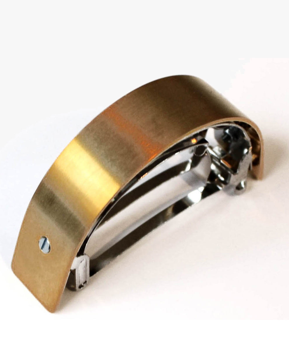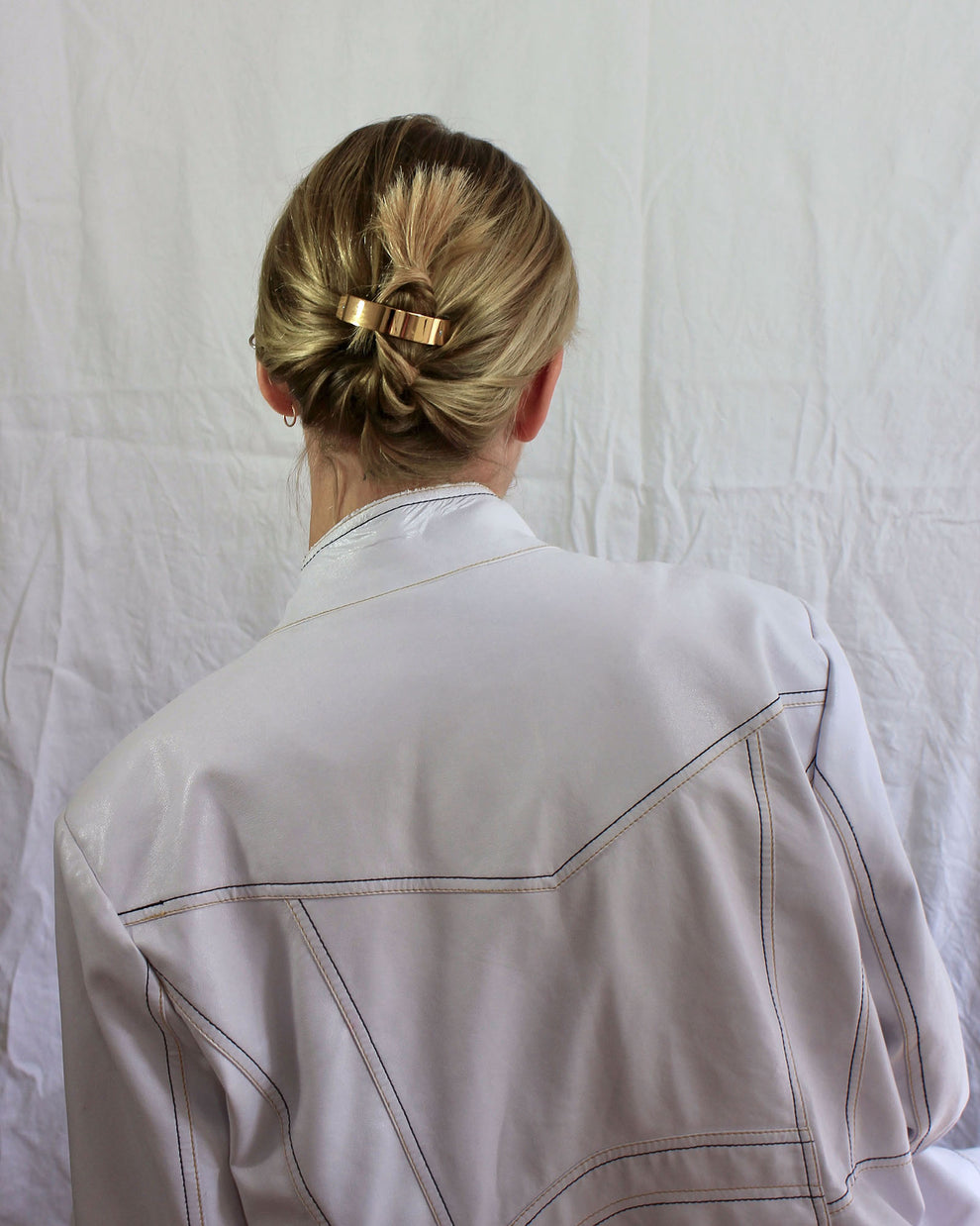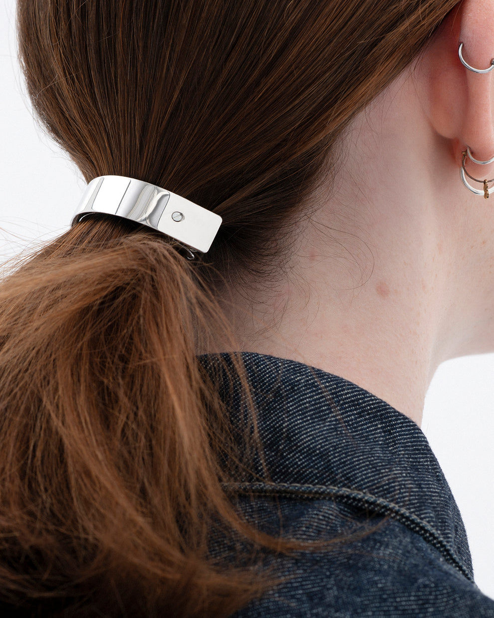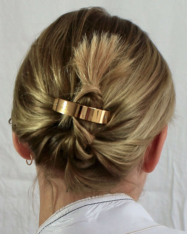 The elegant hair clip is specially designed for braids and adapts to all hair types - whether fine, thick, curly or straight hair. It has just the right balance between modern statement piece and sheer simplicity to enhance any ponytail. Each piece is crafted in steel, gold or silver plated and finished with hand-assembled micro screws.