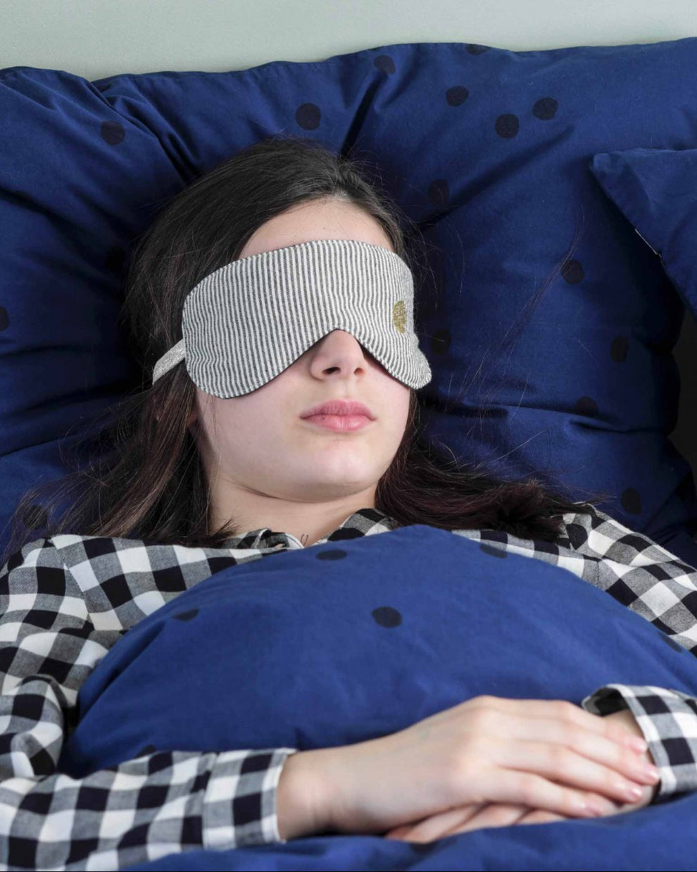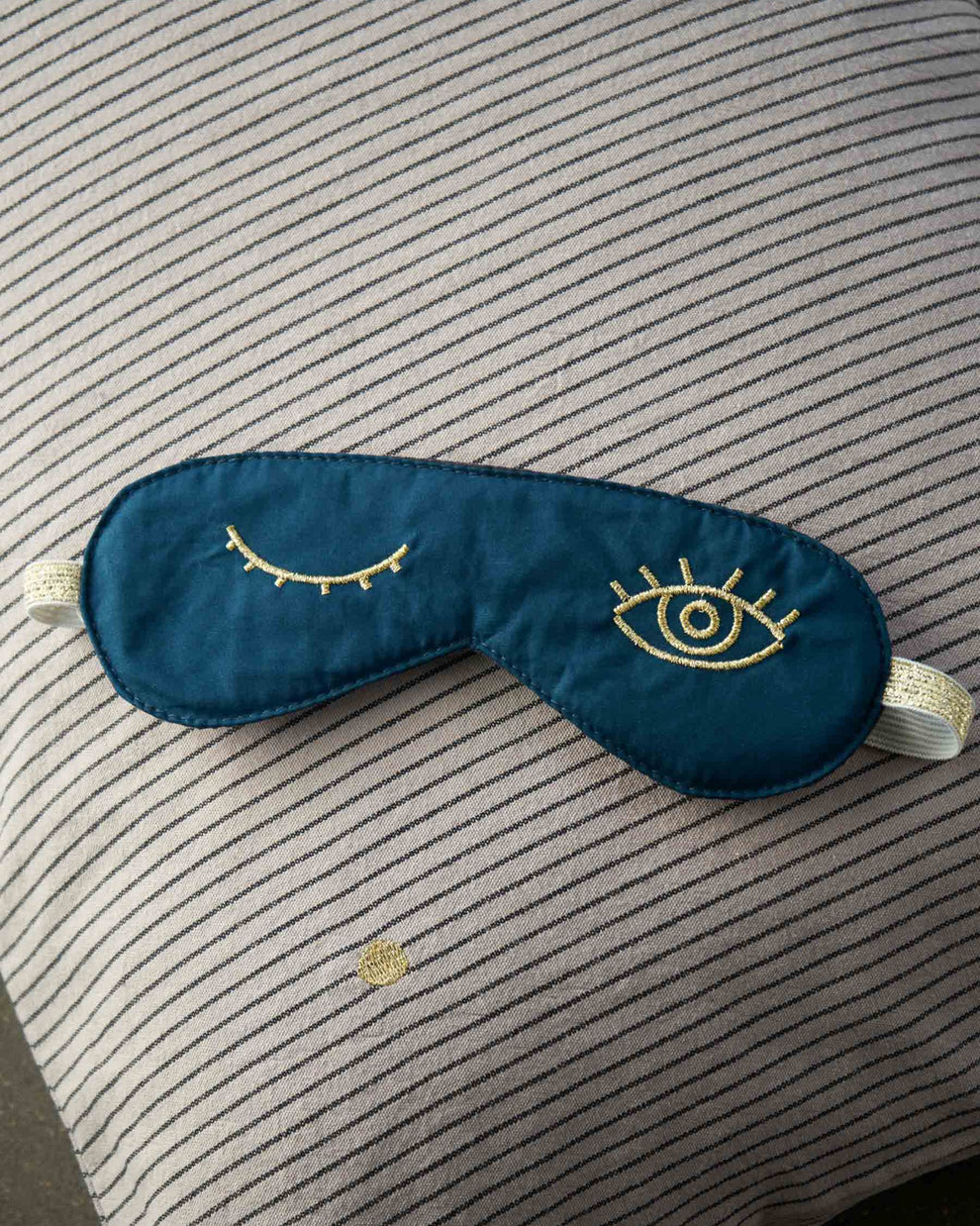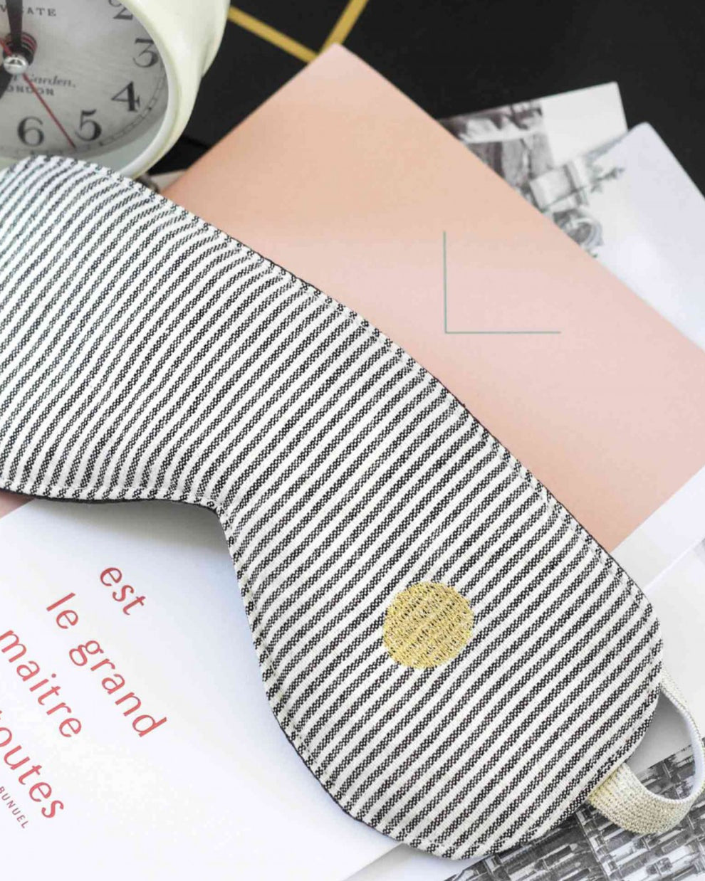 The shape-stable Iona sleep masks with organic cotton on the front and organic cotton percale for the inner eye area are particularly pretty to look at and a faithful companion when sleeping and traveling. They come in a storage bag with a gold glitter elastic band that matches the brand's iconic embroidered gold dot. The Iona fabric made of organic cotton is extremely durable and robust, as it should be for a perfect fit, but at the same time flexible in movement.