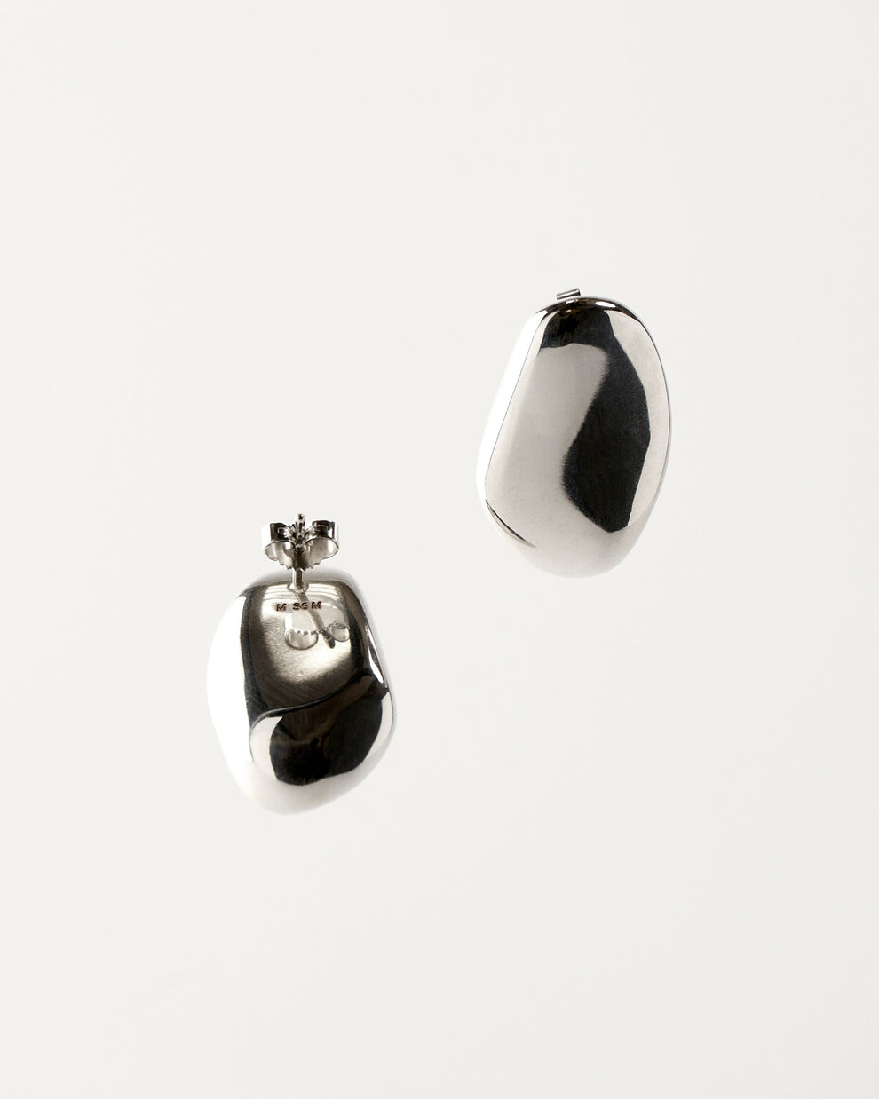 Crafted from sterling silver, these lightweight pebbles catch and play with light. The balance between their polished silver finish and organic lines make them a subtle yet eye-catching addition.