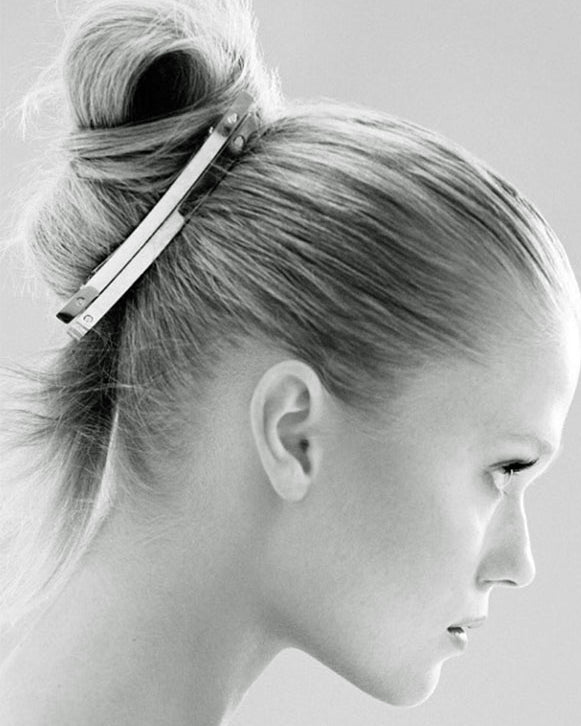 Die Haarspange 021XS von Sylvain le Hen ist in ihrer schmalen elegant geschwungenen Form ein wahres Schmuckstück, das sich harmonisch allen Kopfformen anpasst. Jedes Stück wird in Messing gefertigt, vergoldet oder versilbert und mit handmontierten Mikroschrauben versehen. Größe XS ist für feines bis normales Haar geeignet. Erhältlich in drei Farbvarianten.