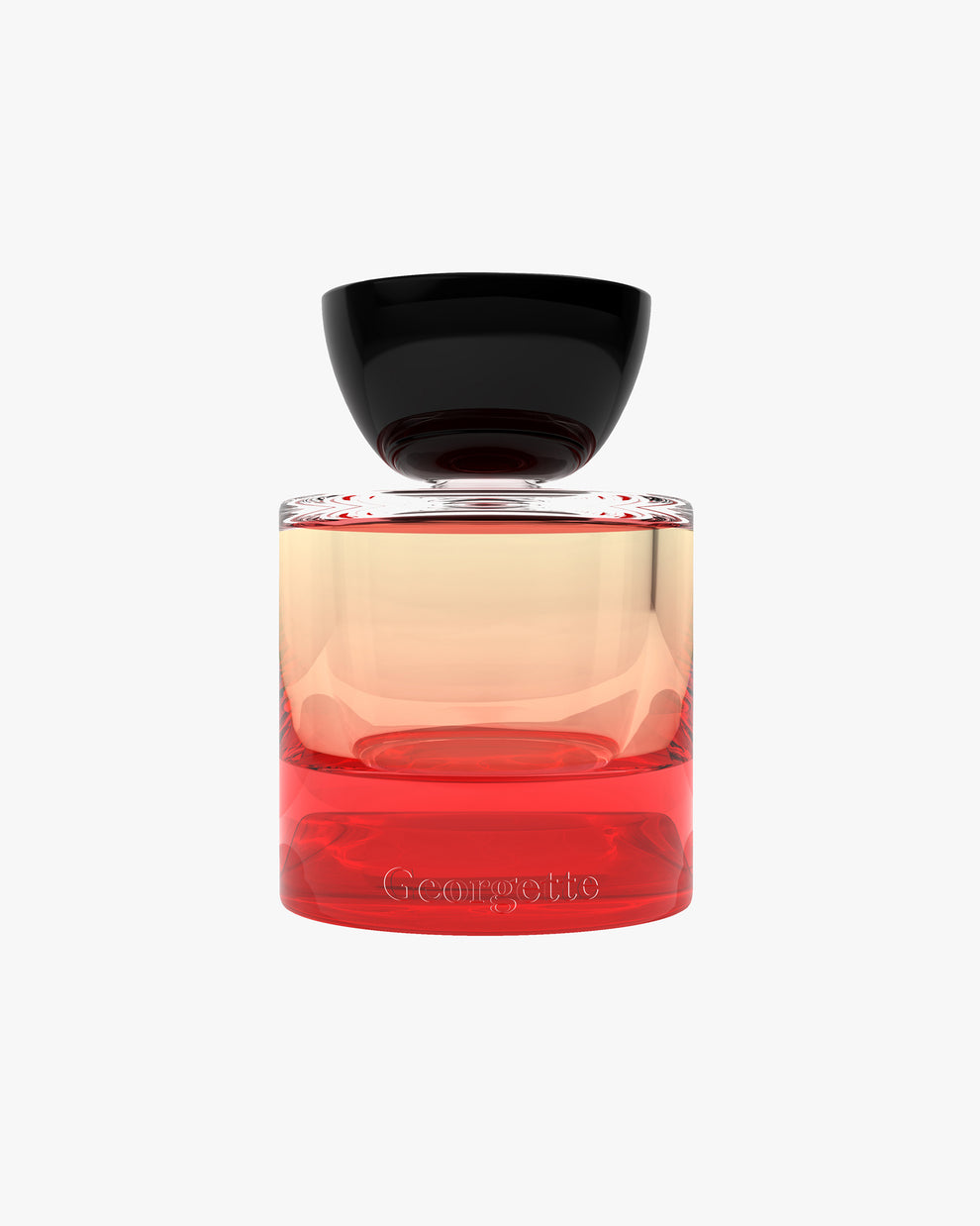 Die Rose steht im Mittelpunkt der Komposition, genauer Türkisches Rosenöl zur Stärkung der inneren Liebe und der Erleuchtung, Veilchenblatt-Absolue für die Persönlichkeitsentwicklung, Sandelholz und Patchouli für Erdung und Guajakholz für energetische Klärung, umhüllt von rosa Pfeffer und schwarzem Tabak. Goergette ist ein energetisierend schwingender Duft, der die Stimmung sofort hebt.