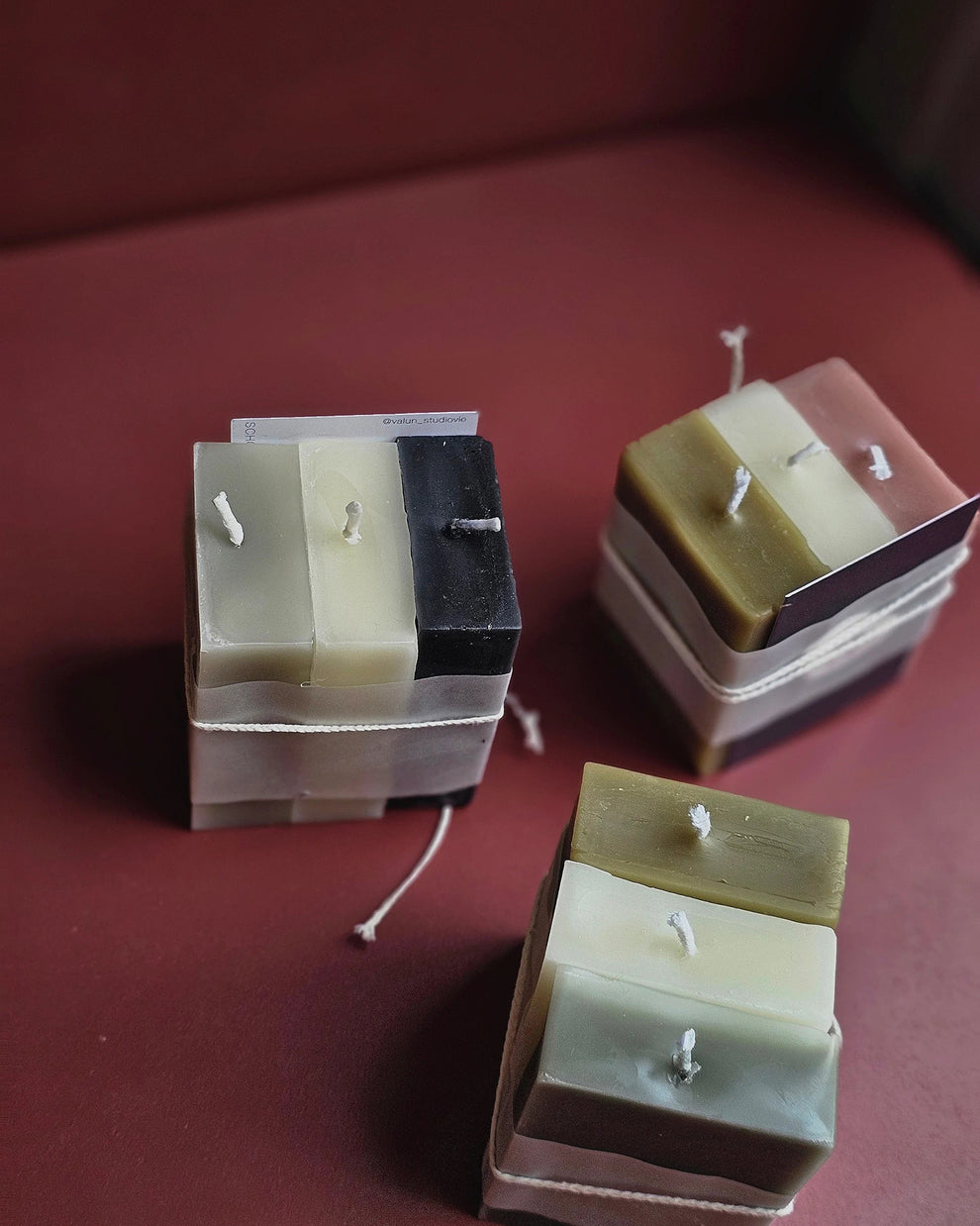 Das FRANK SET besteht aus drei skulpturalen Kerzen, die durch ihre kantig geschnittene, flache Form bestechen.