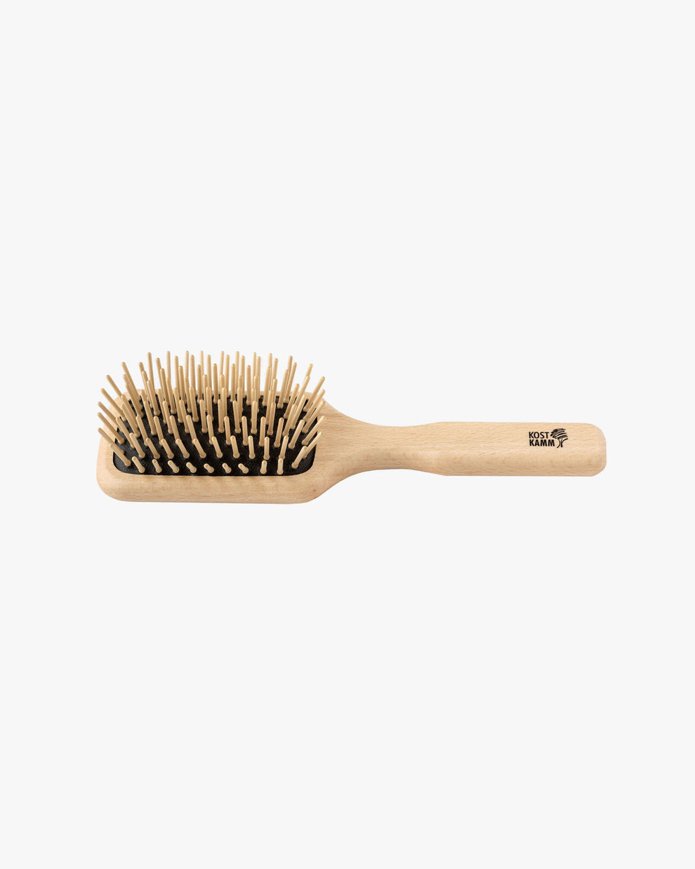 Die schöne rechteckige Paddle-Haarbürste von Kost Kamm ist vegan, antistatisch und aus Buchenholz aus nachhaltiger Forstwirtschaft gefertigt. Sie hat eine Länge von 19,5 cm (9-reihig) oder 25,5 cm (11-reihig) und gerade Holznoppen aus Ahorn, die in einem elastischen Kautschukbett sicher fixiert sind. Die Bürste hat eine intensive Massagewirkung, ist vielseitig einsetzbar, eignet sich aber besonders für mittellanges bis langes, glattes oder gewelltes Haar.