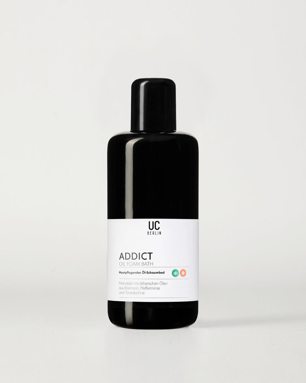 ADDICT: Öl-Schaumbad mit Bio-Mandelöl, ätherischem Rosmarinöl, Minzöl und Tonkabohne - besonders trockene Haut profitiert von den Eigenschaften dieser Kombination. Das Mandelöl hilft der Haut, Feuchtigkeit zu speichern. Rosmarin und Minze regen den Kreislauf an und geben ein erfrischendes Erlebnis.