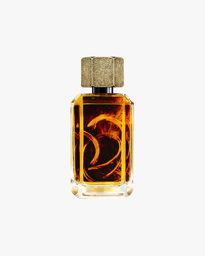Auf der Haut entfaltet es sich als brennendes, geheimnisvolles Parfum, erhellt von Bergamotte und Immortelle – auf Latein Helichrysum, die „goldene Sonne“ – und entfacht die Kraft vitaler Energie.