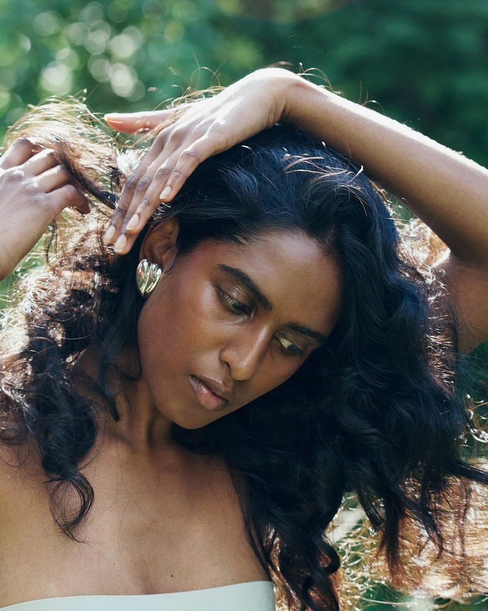Hohl gegossenes Sterlingsilber verleiht dem geerdeten Design eine überraschende Leichtigkeit.