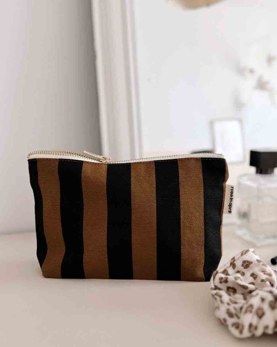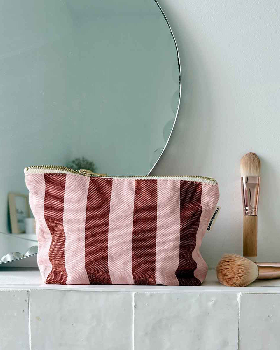 Das Sofia Federmäppchen im Streifen-Print ist perfekt, um all deine Essentials zu verstauen: Make-up, Notizbücher, Stifte … oder die deiner Kinder: Buntstifte, kleine Spiele usw.