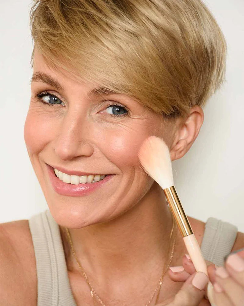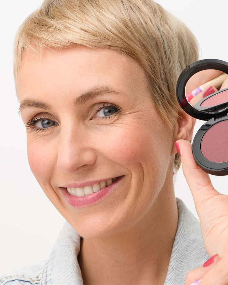 Der Powder Blush, kreiert von Make-up-Artist Miriam Jacks, ist wie alle unsere Puderprodukte talkfrei formuliert, um deine Haut nicht auszutrocknen. Das vegane Rouge enthält feuchtigkeitsspendende Inhaltsstoffe wie Sheabutter und Vitamin E und ist die Puder-Alternative zum Cream Blush für alle, die ölige Haut haben. Unsere matten Powder Blushes Apricot und Rose sind besonders für helle bis mittlere Hauttypen geeignet, während Peachy Glow für alle Hauttypen als Rouge und Highlighter geeignet ist. Unser Rosewood Powder Blush ist für alle Hauttypen geeignet und in der Farbintensität aufbaubar.