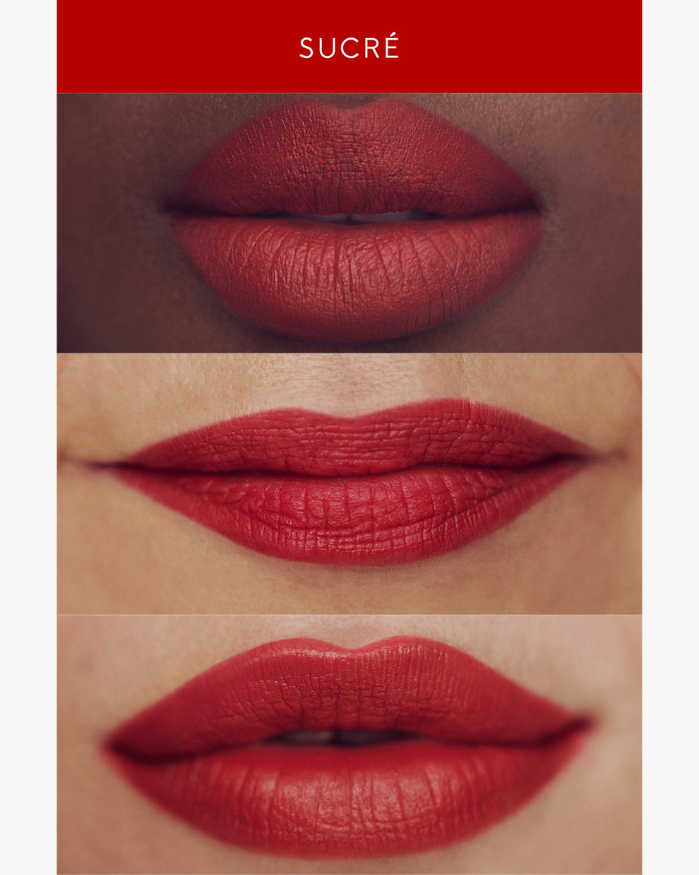 RICINUS COMMUNIS (CASTOR) SEED OIL, CERA ALBA (BEESWAX)/CIRE D’ABEILLE, CAPRYLIC/CAPRIC TRIGLYCERIDE, MICA, CERA CARNAUBA/COPERNICIA CERIFERA (CARNAUBA) WAX/CIRE DE CARNAUBA, BUTYROSPERMUM PARKII (SHEA) BUTTER, COCONUT ALKANES, ROSA RUBIGINOSA (ROSE HIP) SEED OIL, OLEA EUROPAEA (OLIVE) FRUIT OIL, HELIANTHUS ANNUUS (SUNFLOWER) SEED OIL, DIOSCOREA BATATAS ROOT EXTRACT, COCO-CAPRYLATE/CAPRATE, TOCOPHEROL, AMMONIUM GLYCYRRHIZATE, MALTODEXTRIN, FRAGRANCE/PARFUM. +/–: CI 77891 (TITANIUM DIOXIDE), CI 77492 (IRON OXIDES), CI 77491 (IRON OXIDES), CI 75470 (CARMINE), CI 77499 (IRON OXIDES), CI 15850 (RED 7 LAKE).