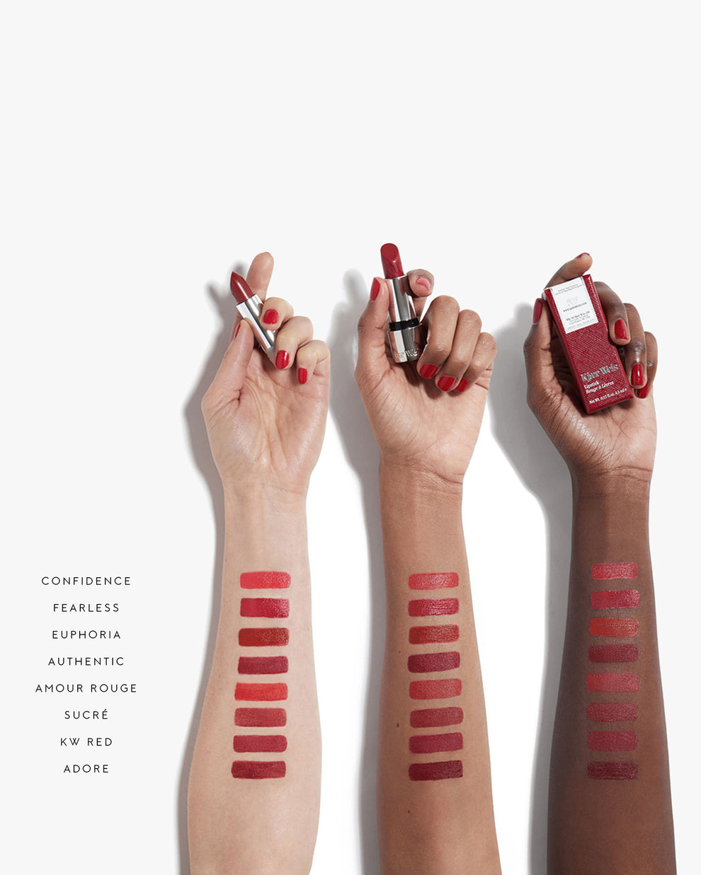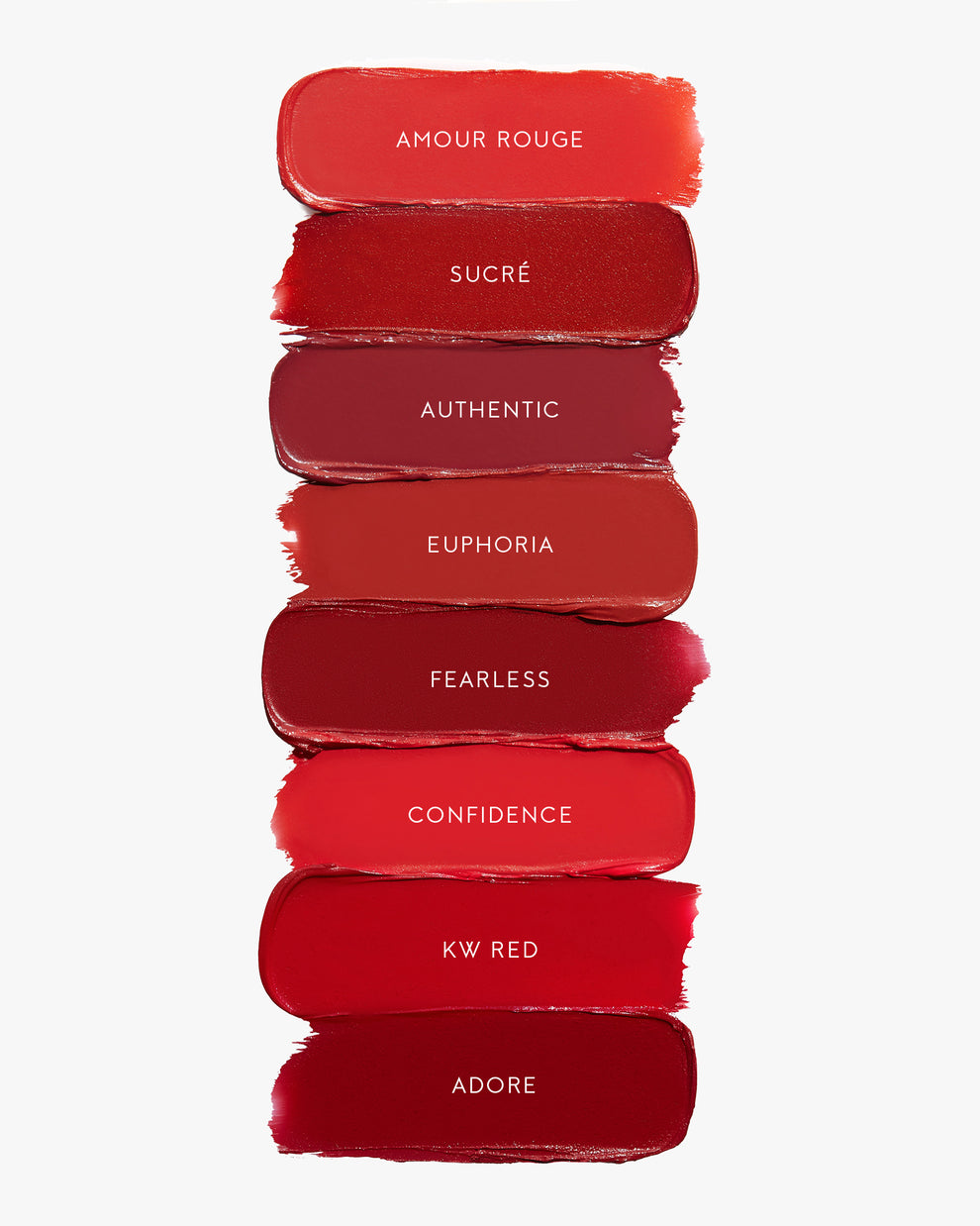 - Kühl (eher rosa): Kirsten empfiehlt dir neutrale bis kühle Rottöne wie Adore, Authentic, Fearless, KW Red.
