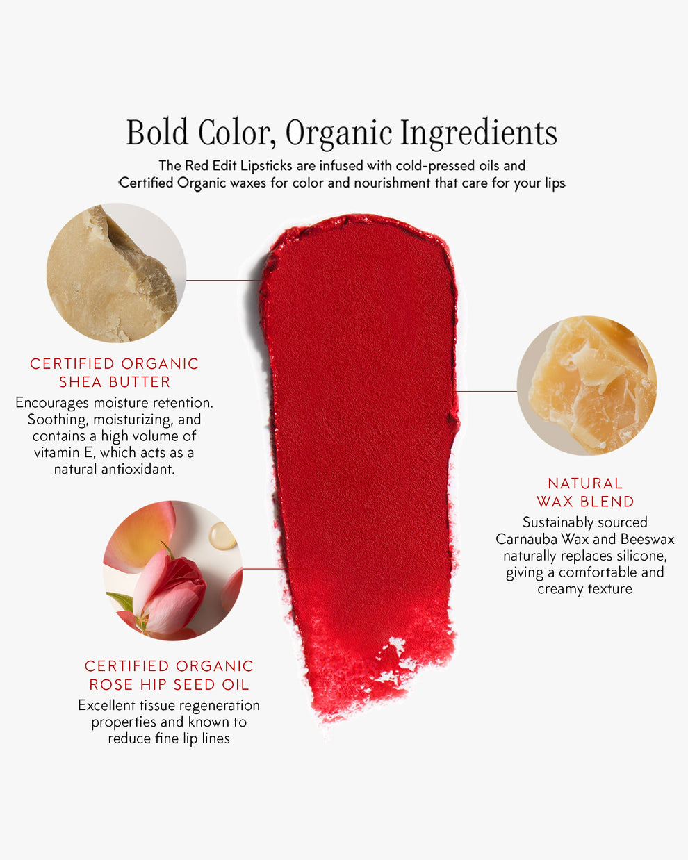 Lust auf eine farbintensive und kraftvolle Rotpalette? Die schmeichelnden Shades der Red Edit Kollektion von Kjaer Weis mit ihren hochwertigsten biologischen Inhaltsstoffen lassen sich dank ihrer cremigen, ultra-pflegenden Formel leicht auftragen und sorgen für ein weiches satiniertes Finish. Biologische Zutaten wie Shea Butter und Jojobaöl werden durch die Wärme der Lippen aktiviert; so bleiben diese geschmeidig weich und voller Farbe. Die Lippenstifte sind auch als Refill erhältlich, so dass du das hochwertige Metallcase weiter verwenden kannst und natürlich auch den Farbton immer wieder austauschen kannst.
