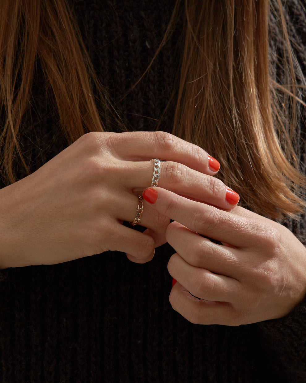 Dies ist die Kette für den Finger! Hier hast du wirklich kein klobiges Gefühl beim Tragen, was sie zum perfekten leichten Alltagsring macht. Dieses schöne Stück gibt es bei uns in Sterlingsilber und auch in vergoldetem Sterlingsilber.