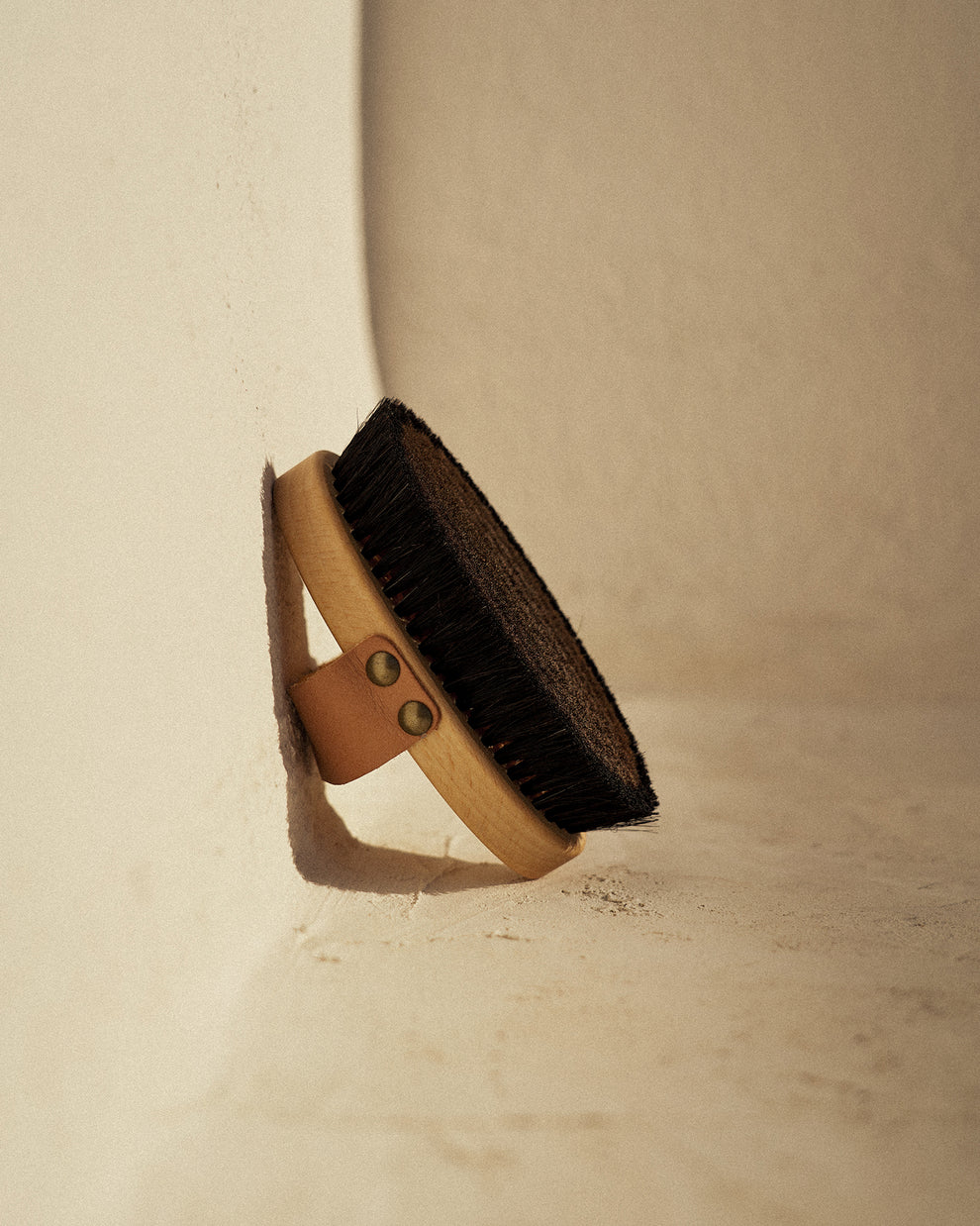 Körperbürste mit feinen Kupferborsten für straffe Haut und mehr Energie