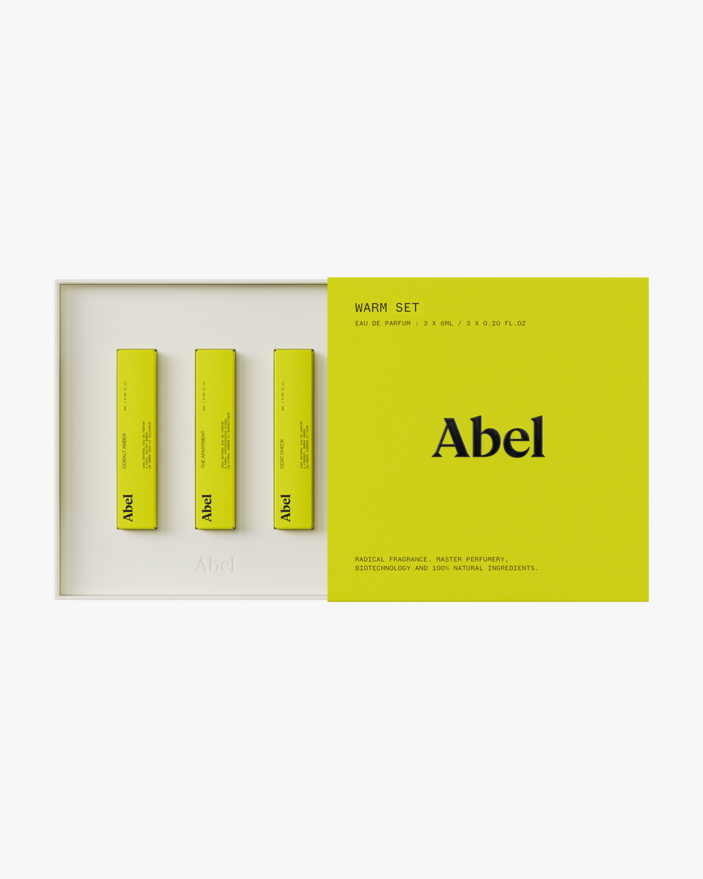 Verpackt in einer edlen Geschenkbox präsentiert das Warm Gift Set ein Trio vollmundiger Düfte von Abel. Mit gourmandigen Noten von dunklen Früchten, Gewürzen und Vanille, kombiniert mit rauchigen und ambrierten Akkorden, erinnert das Set an Abende voller Tanz und Kerzenschein.